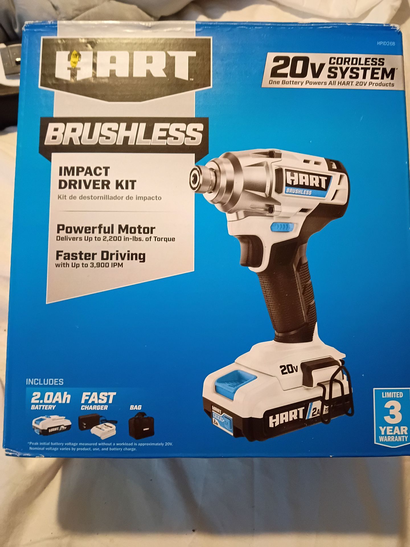 Brand new Hart brushless impact drill kit. Includes 2.0ah battery. Fast charger and a bag $80 obo