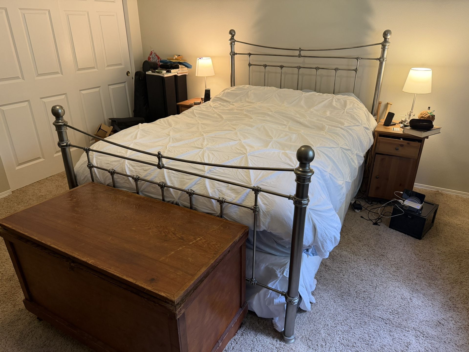 EUC! Pottery Barn Whitney Queen Bed Frame and FREE barely used Queen mattress & box spring!!! Color: Pewter Purchased new for $885