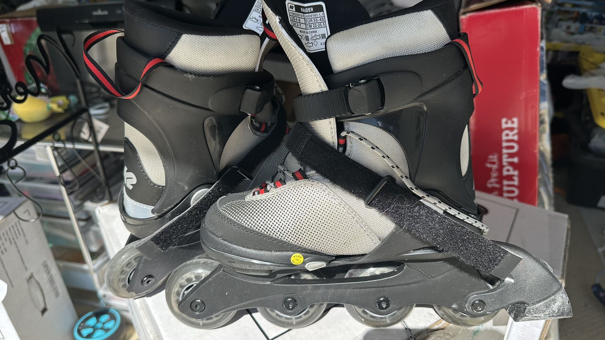 K2 Raider youth adjustable inline skates. Adjustable Sizing: The skates can be adjusted up to five sizes to grow with the child. Used only 2 times