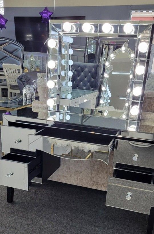 Vanity Desk Beveled Mirror LED lights Bulb Mirror ✅️✅️