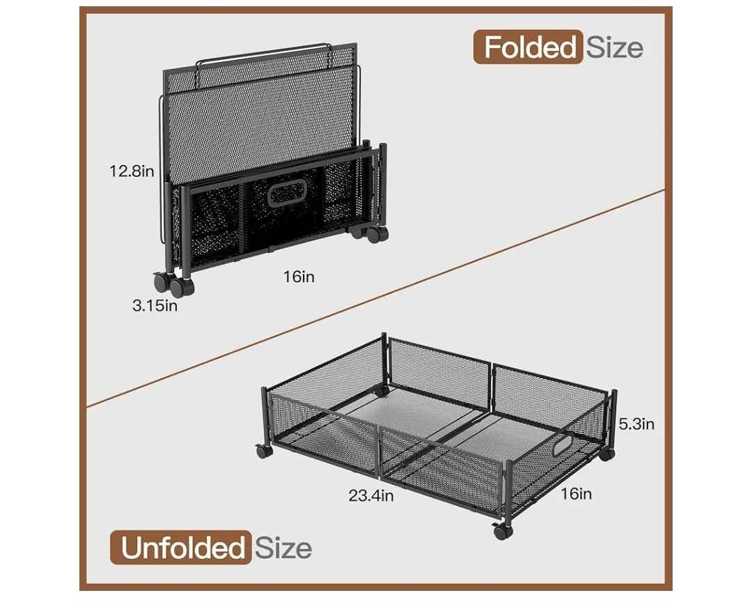 Under Bed Storage with Wheels, Foldable Metal Mesh Underbed Storage Container Bins, Tool-free Assembly Clothes Drawer Organizer,1Pack $10