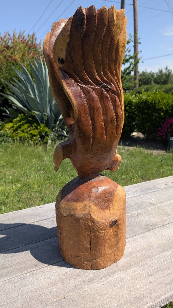 31" Hand-Carved Wooden Eagle Statue – Rustic Folk Art Chainsaw Carving Decor
