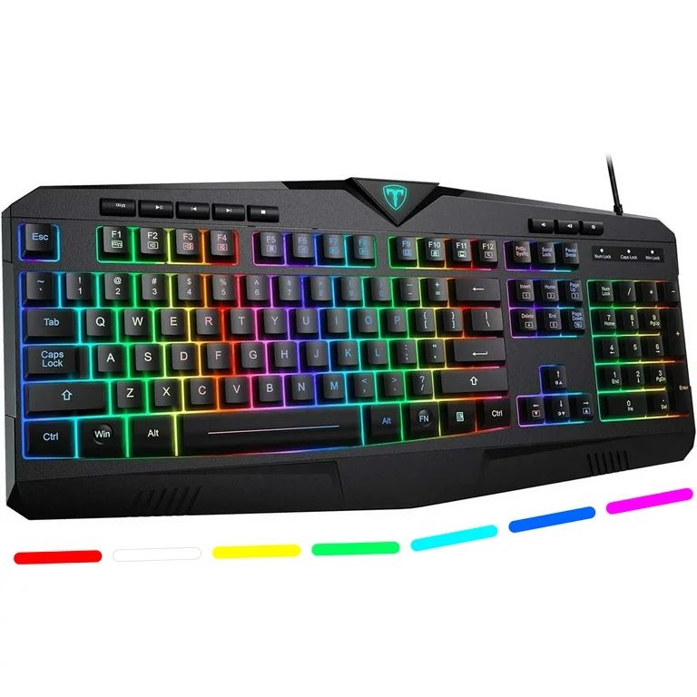 Upgraded Mechanical Gaming Keyboard with Adjustable 7-Color RGB Backlit, Ergonomic Wired Keyboard with Wrist Rest, Waterproof Anti-Ghosting Light Up K
