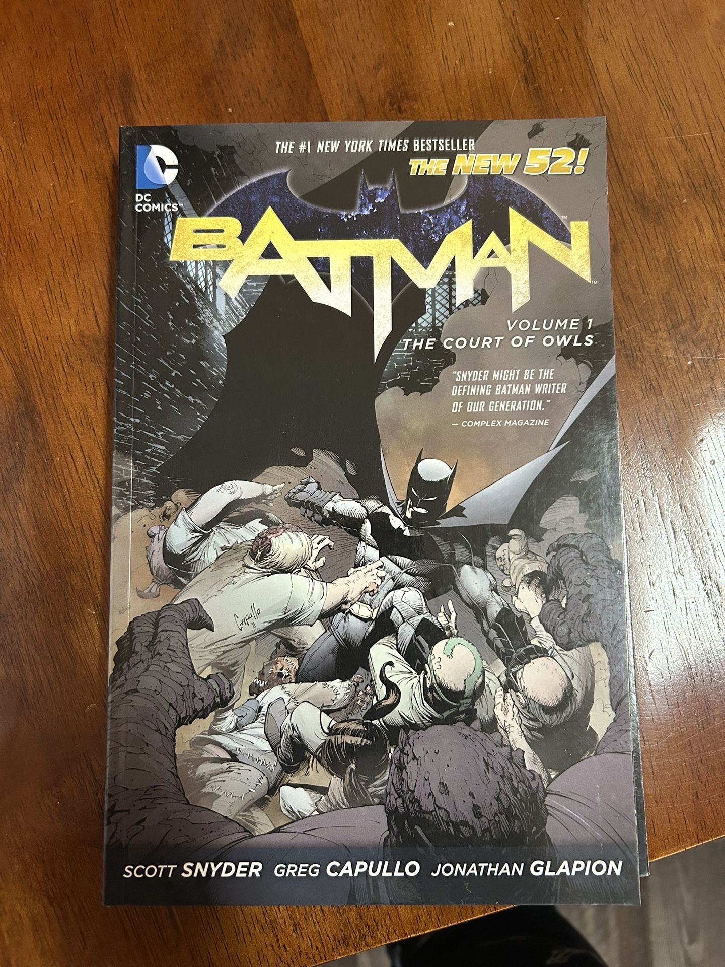Selling a set of three Batman The New 52 graphic novels: π Vol. 1 β The Court of Owls π Vol. 2 β The City of Owls π Vol. 3 β Death of the Family All in great condition. Barnes & Noble sells Vol. 1 & 3 for $16.99 each, and Amazon lists them between $9.75β$14.98, so this is a solid deal. π₯ Take all three for just $25. Perfect for collectors or anyone wanting to jump into one of the best Batman story arcs. First come, first served.