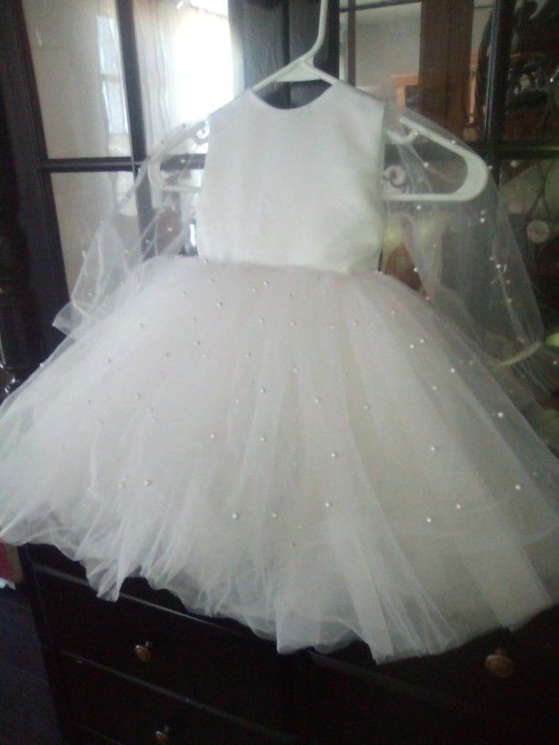 White perol Little girls dress. For a one year old or two baby girl. It was worn once for 2 hours.