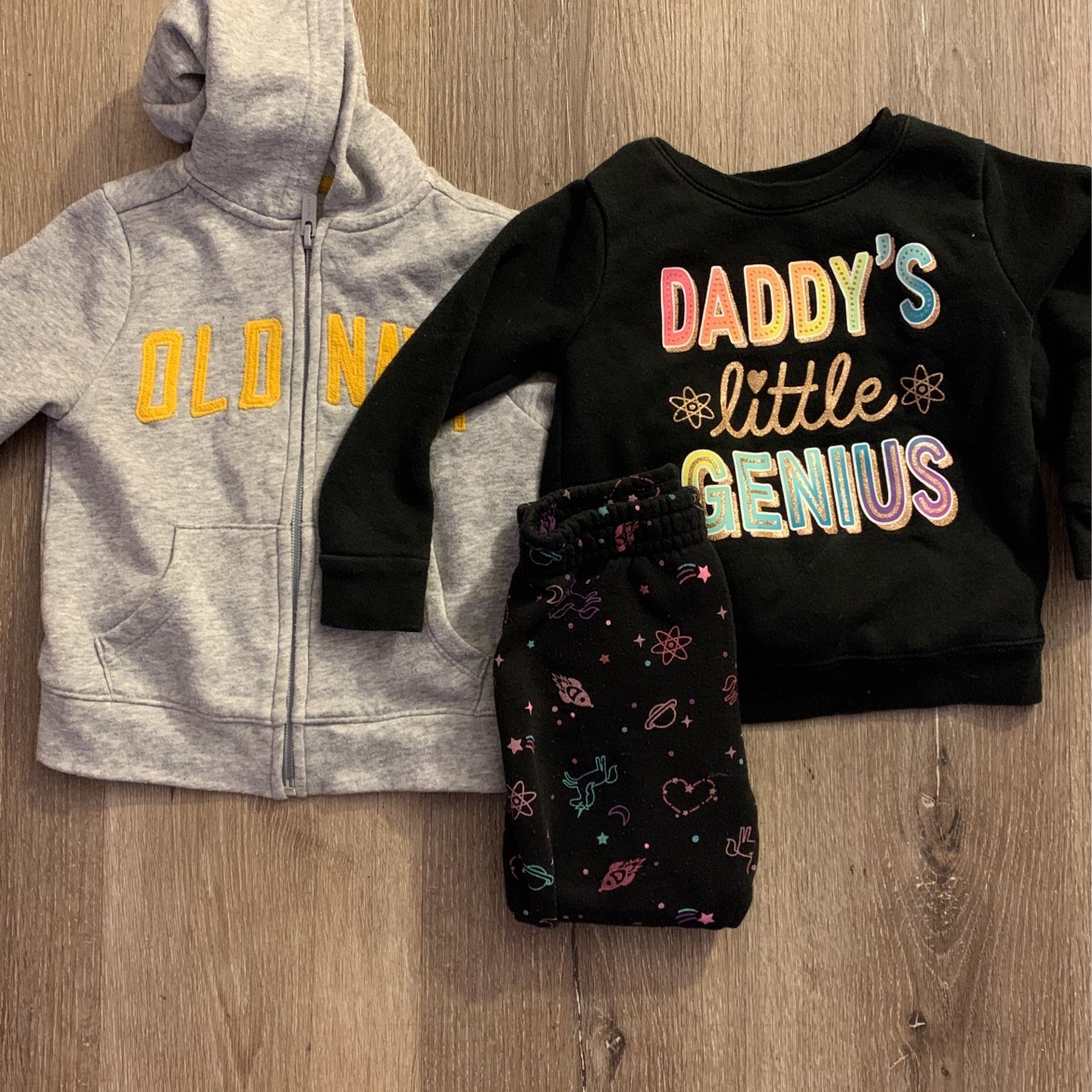 2T old navy sweater zip up and 1 crew neck sweater with matching sweats
