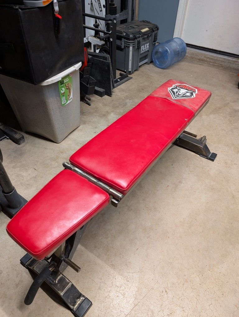 Sorinex Adjustable Bench. I believe this is the 0-90 NP V1 model. Very heavy and very solid. This will be the last bench you will ever need and will with stand anything you throw at it. Has the University of New Mexico bench cover on it. Easily removable if you don't want it. The bench is in the classic clear grind color. Pick up at Ray and Dobson. Rogue, rouge, ivanko