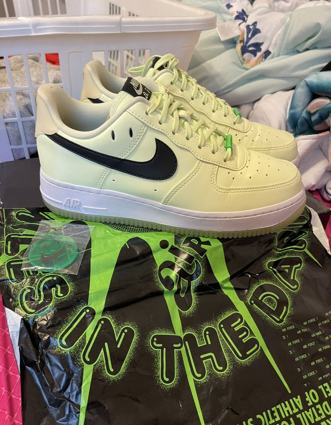 Just in time for Halloween, limited edition glow in the dark, Women's Nike Air Force One. Size 8, gently worn, Entire Sole and shoes glow in dark. I have original box and authenticity paperwork. Can't find these anywhere!!!!