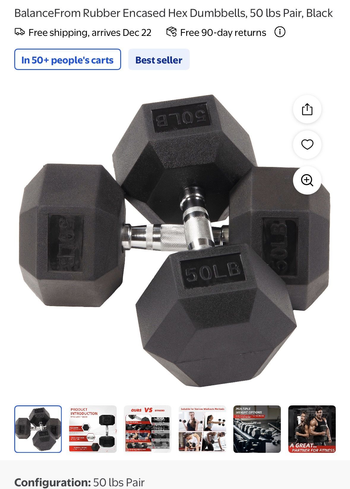BalanceFrom Rubber Encased Hex Dumbbells, 50 lbs Pair, Black…. BRAND NEW , Asking $100 for both …