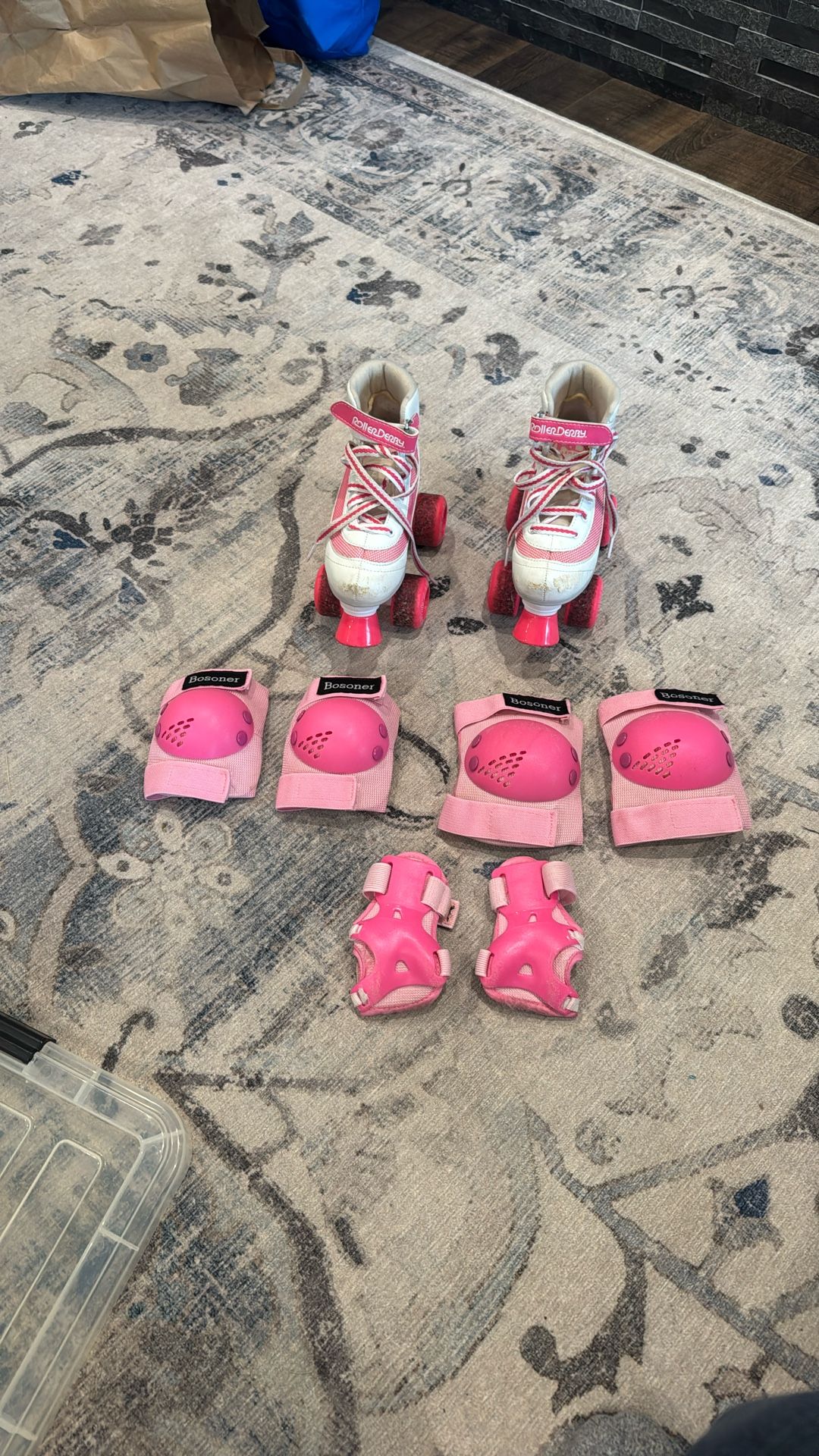 Girls size 1 roller skates with: Knee pads Elbow pads Palm protectors