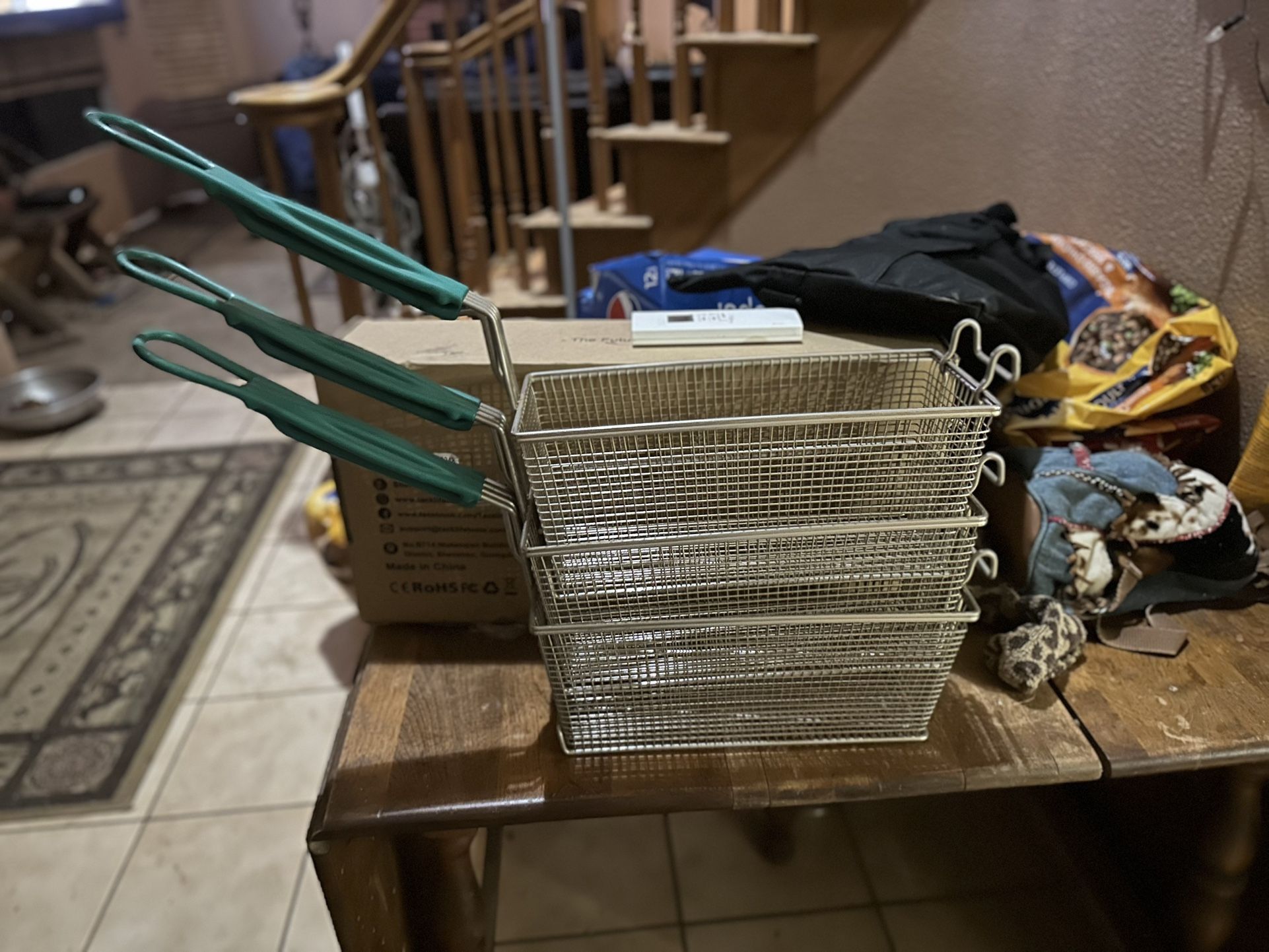 Theee commercial fryer baskets $25 each or all 3 for $65
