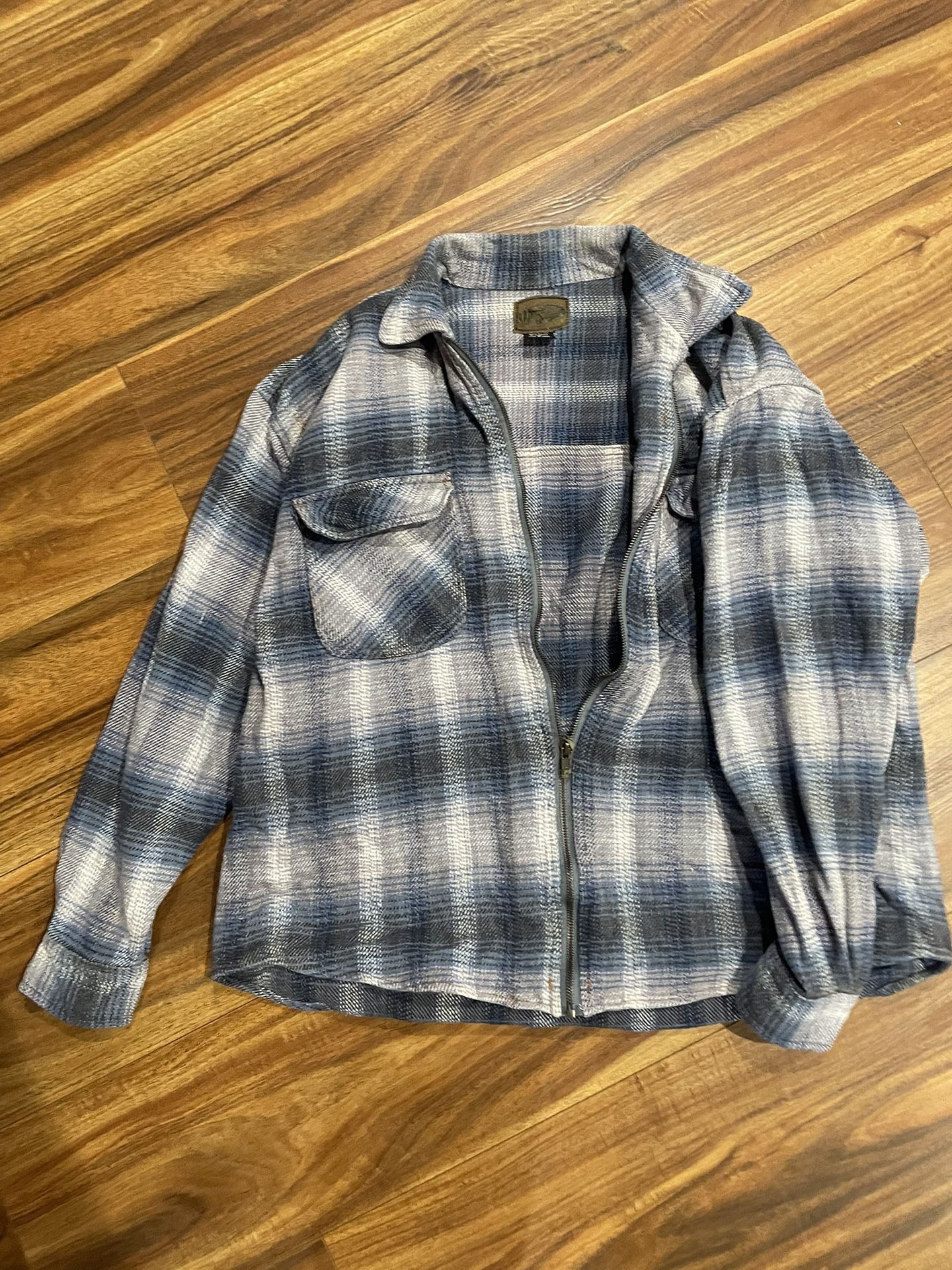 VTG Quicksilver Salt Water Zip Up Plaid Flannel Long Sleeve Shirt Blue White M