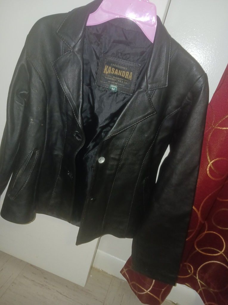 Ladies real black leather jacket size medium the jacket would be a good compliment to an outfit 50 dollars cash only please message me if you are interested thank you have a blessed day