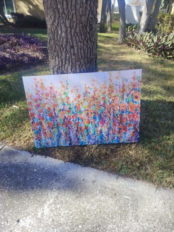 Beautiful vibrantly colored wildflower artwork. Large. Like new