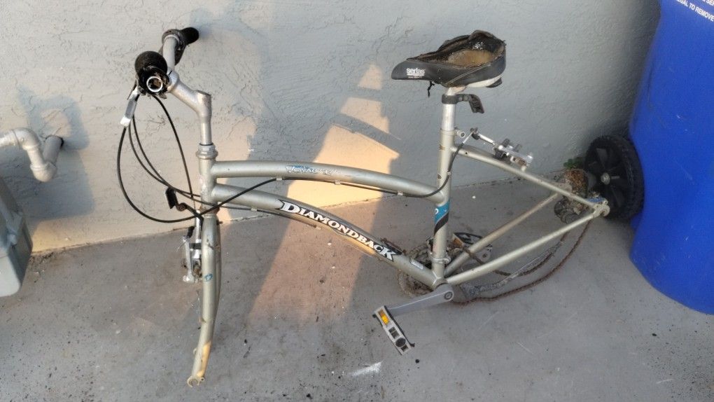 Selling this Rare Diamondback Voyager Beach Cruiser/Mountain bike frame with gears. Bike is complete minus the wheels. This is a great bike and was good when it was ride. Haven't used it in a while and cleaning out the garage. Selling it cheap $75 obo. I can deliver as well if needed.