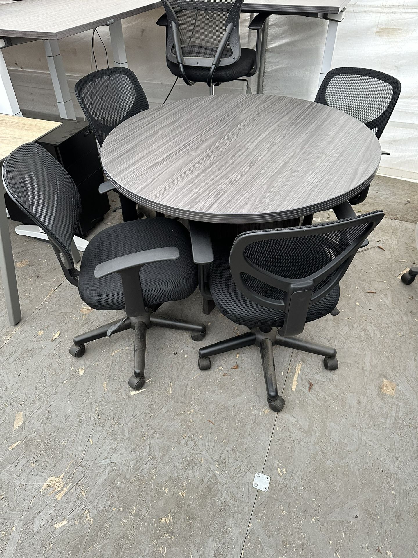 All new $750.00 set. We are located in Bloomington California and have Office Furniture such as Reception Desk, L shaped or U shaped Desks, Office Chairs, Lateral or Storage Cabinets, Conference Tables, and more on display ready to go in stock. If you would like to stop by please let me know what time works best for you.
