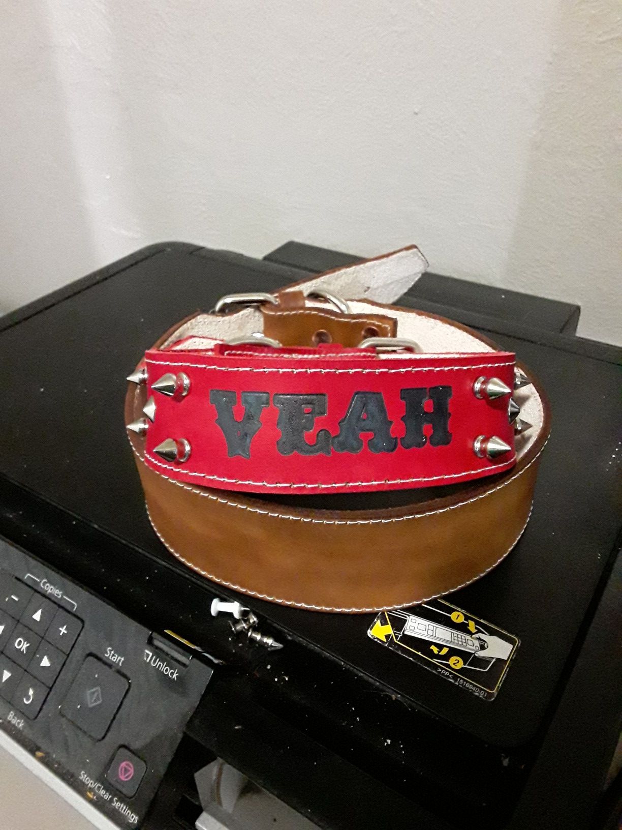 Dog collar 100%leather S,M,L,XL custom with spikes (collares para perros todas las medidas puro cuero grueso vaqueta con pikos)