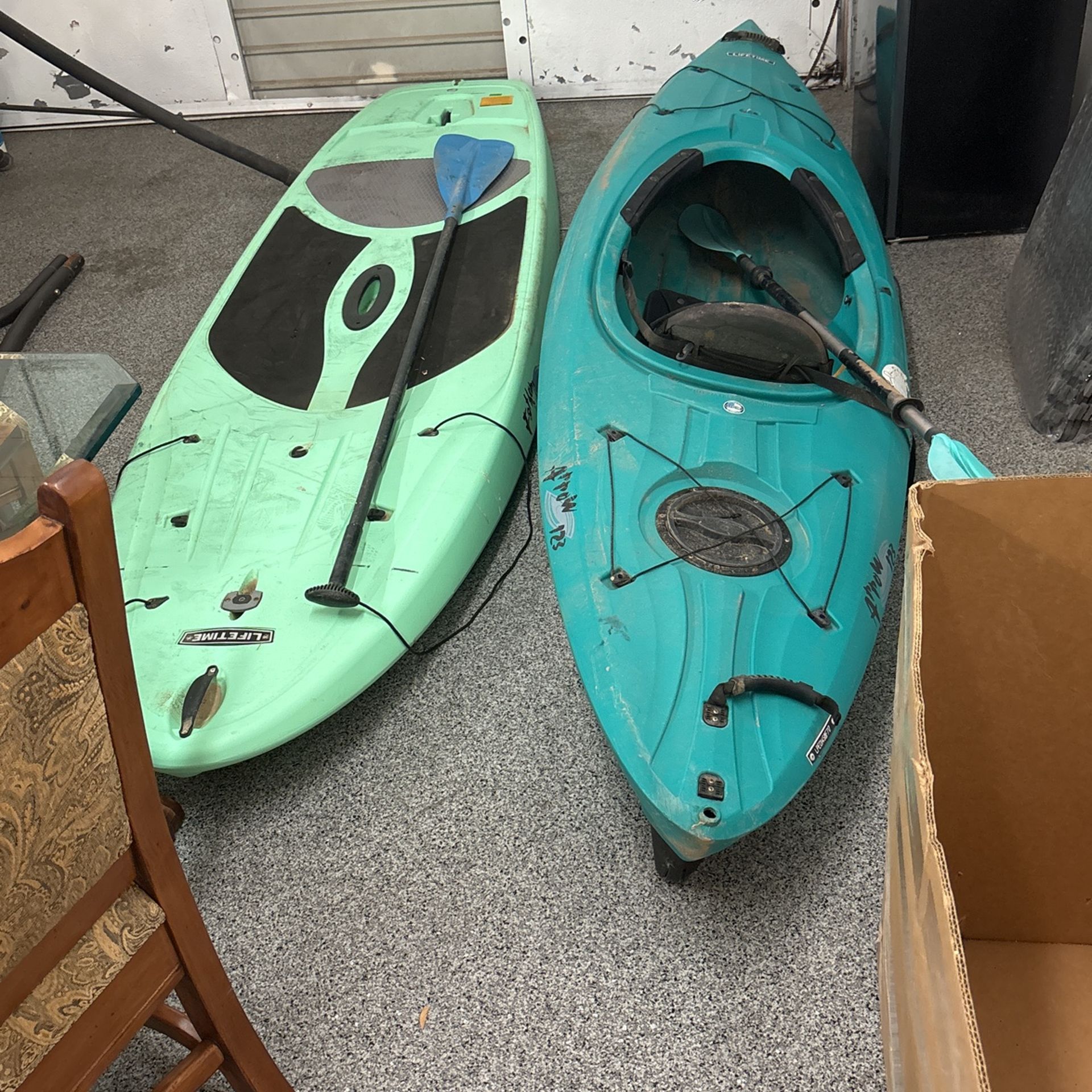 A little dusty but very good equipment comes with the new paddles everything is there lake ready package deal