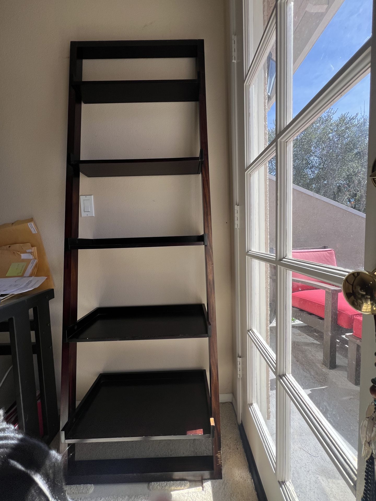 Used Crate and Barrel shelf. Has a few scratches that could be fixed with a little dab of stain. Has ft all hardware and pieces.