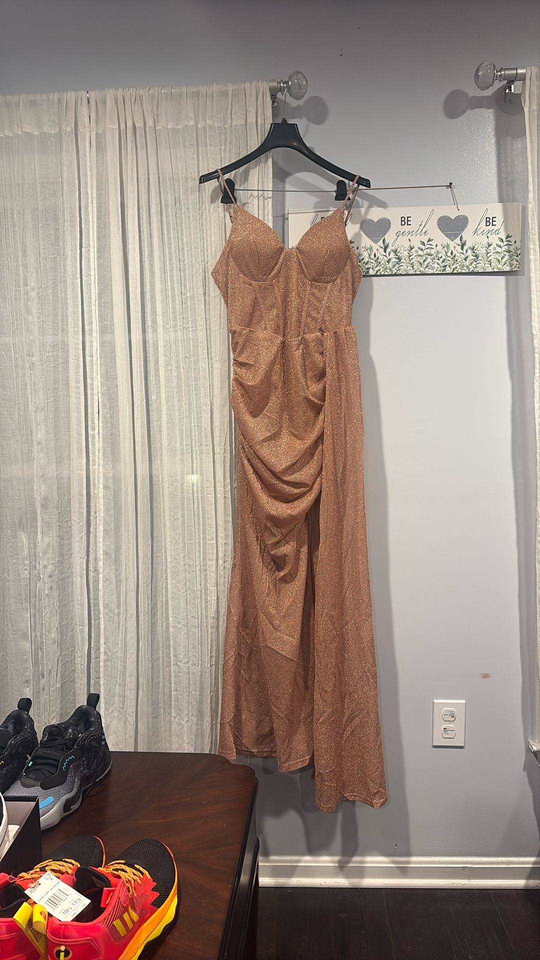Very sparkling gold dress.