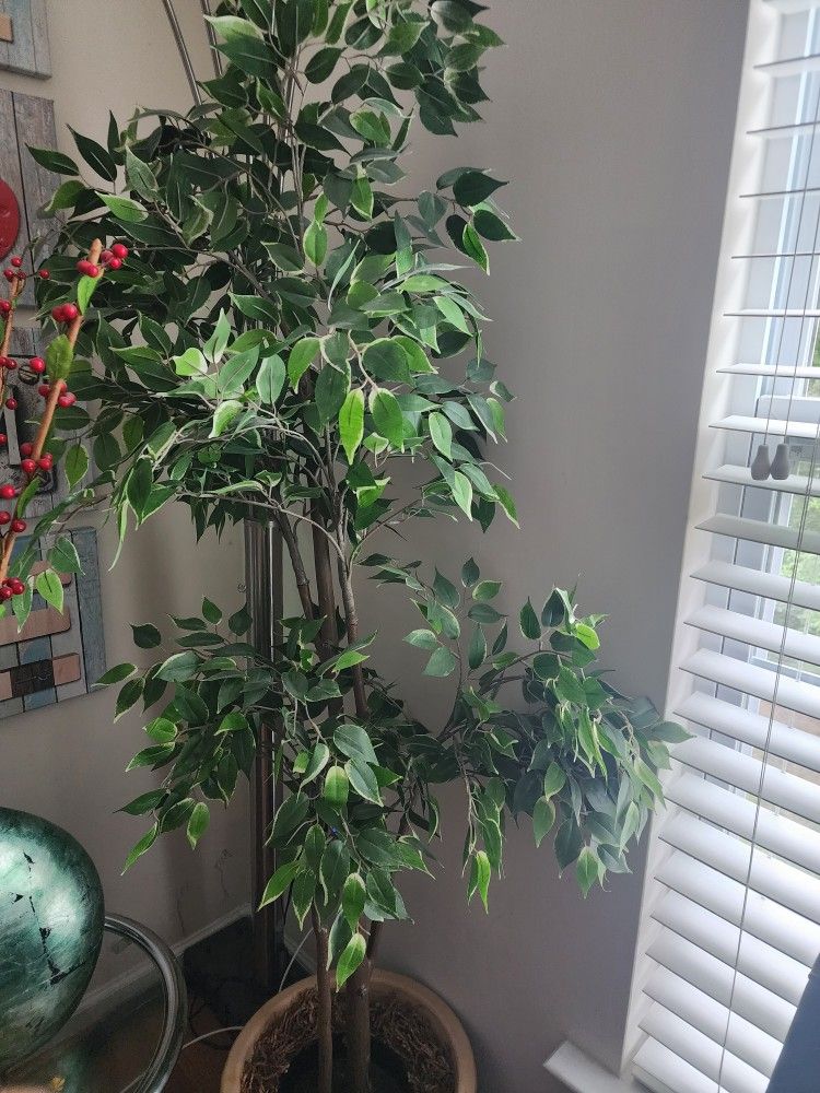 Hi They are lovely.. Very pretty Originally & heavy duty well made Artificial but real look like plants, set of 2.. Height from top to floor they are aprox 5 feet 7 inches π Pets free smoke free home Paid- $75/- each + taxes Price for 1- $40/- only Or pay $75/- for the pair.. They are Amazing & amost new so No low offers pls. Thanks