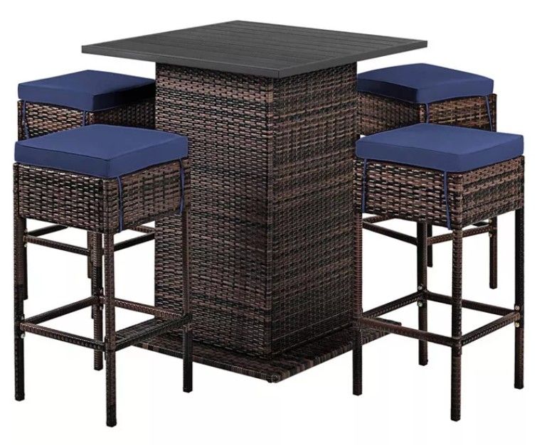 5 Pieces Patio Rattan Bar Furniture Set with Cushions and Hidden Storage Shelf New in a Box - Nuevo en su Caja Extended Warranty Available - Ofrecemos Garantia Extendida 1-year Warranty -1-Ano de Garantia We do Financial - Hacemos Financiamiento 10117 NW 87 Ave Medley, FL 33178@