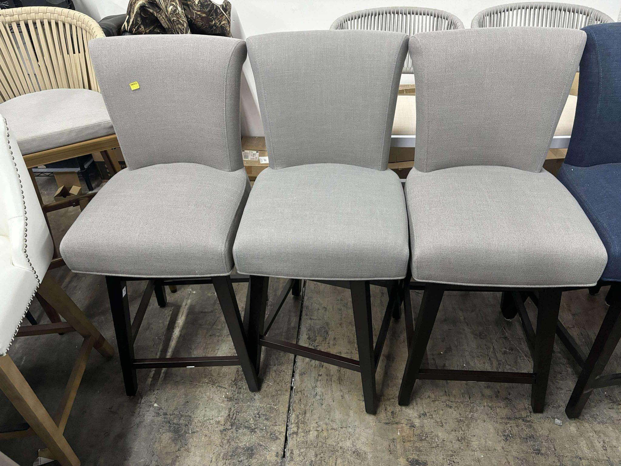 CHITA 26 in Upholstered Swivel Counter Bar Stools with Back&Wood Legs Set of 3, Fabric in Flint Gray