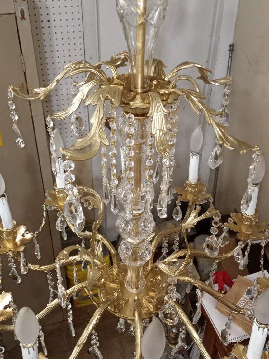 Antique Large European Chandelier Solid Bronze And Crystal Rewired Complete And Bronze Polish Size 36 X 28