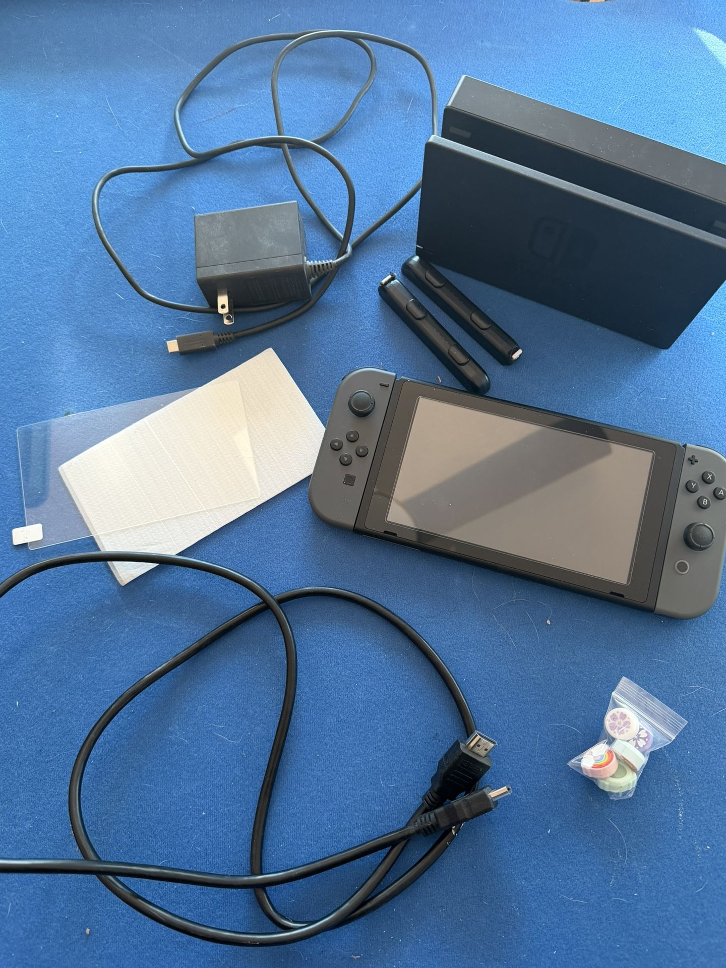 Like new. Factory reset, no drift, works perfectly Games and accessories and sd card avaliable sold separately Comes with Switch device (grey joycons) HDMI cable Charger TV dock Extra screen protector Joycon attachments Joystick covers