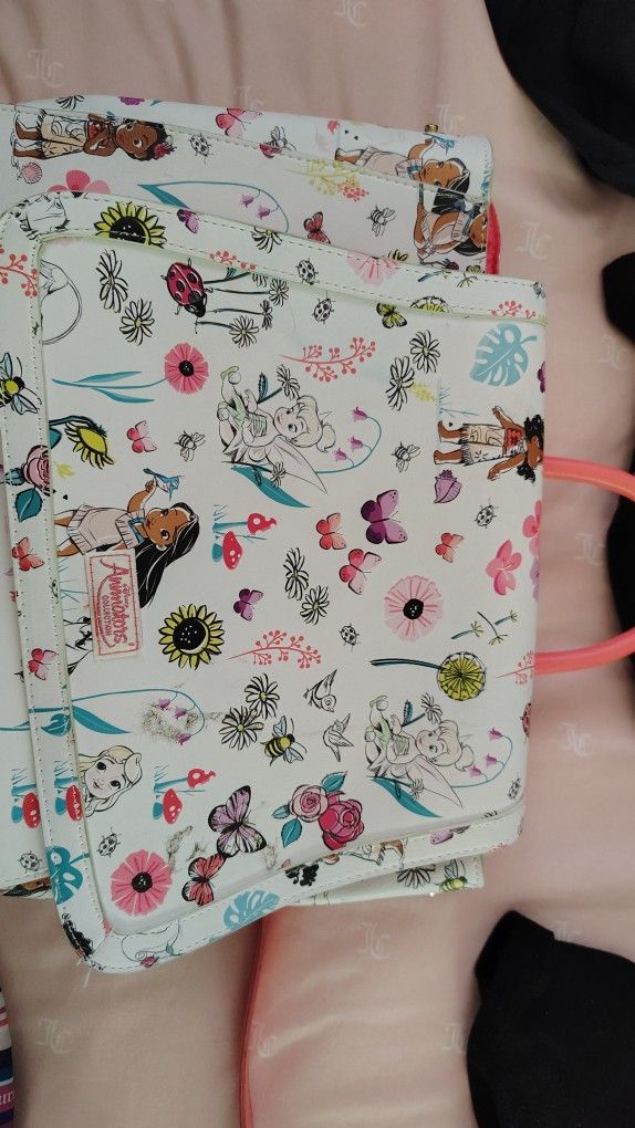 White Disney Animation bag with Princess's on it. Pink lining with pockets inside. Willing to deliver