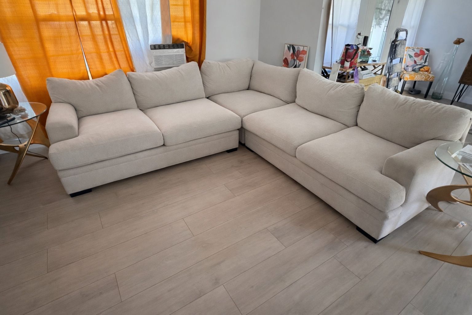 This sectional are in good condition comes with cushions it could need a deep cleaning, we already wash the cushion linings… we have 2 small dogs $500 OBO