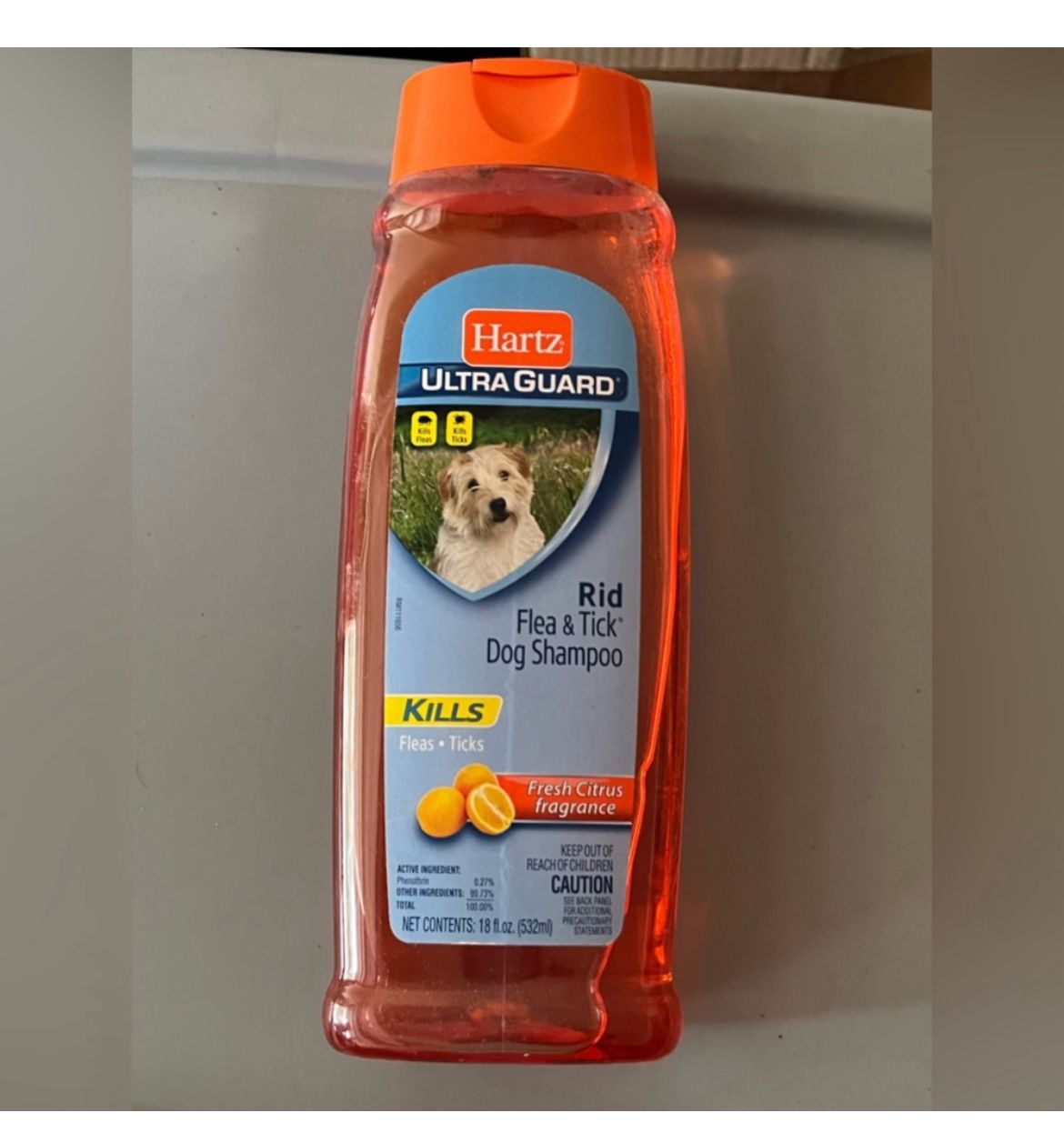 Due to being in a tote in my garage some flea shampoo did leak out as you can see from the pic and damaged the flea spray but the bottle is full despite how it looks