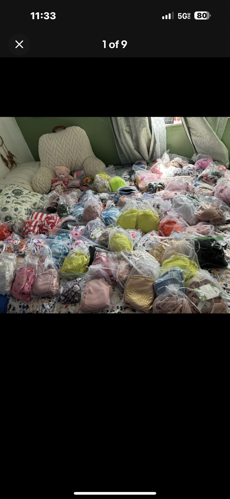 From shein and other chinese wholesalers theres 126 bikini sets 45 Small 36 Medium 26 Large 17 Xlarge there are screenshots of some of the styles included theres alot of ranges between full coverage, cheeky, thong and one pieces