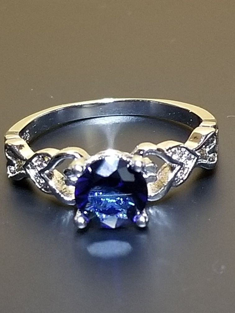 Women's vintage designer ring Blue sapphire wedding engagement promises ring white gold over 925s size 9.0