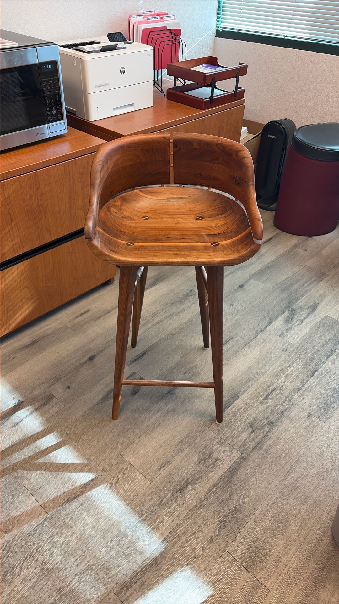 Elevate your space with this stunning handcrafted bar stool - true statement piece that blends artistry with function. Sculpted from richly grained solid wood, its warm, natural tones and flowing patterns make every angle visually captivating and completely one-of-a-kind. If you’re looking for a piece that combines comfort, craftsmanship, and timeless design, this bar stool is more than seating, it’s a conversation starter. There are a total of 4 stools. Would want $400 for pair - $700 for all 4. Not haggling. No shipping. You come and pick up with CASH only.