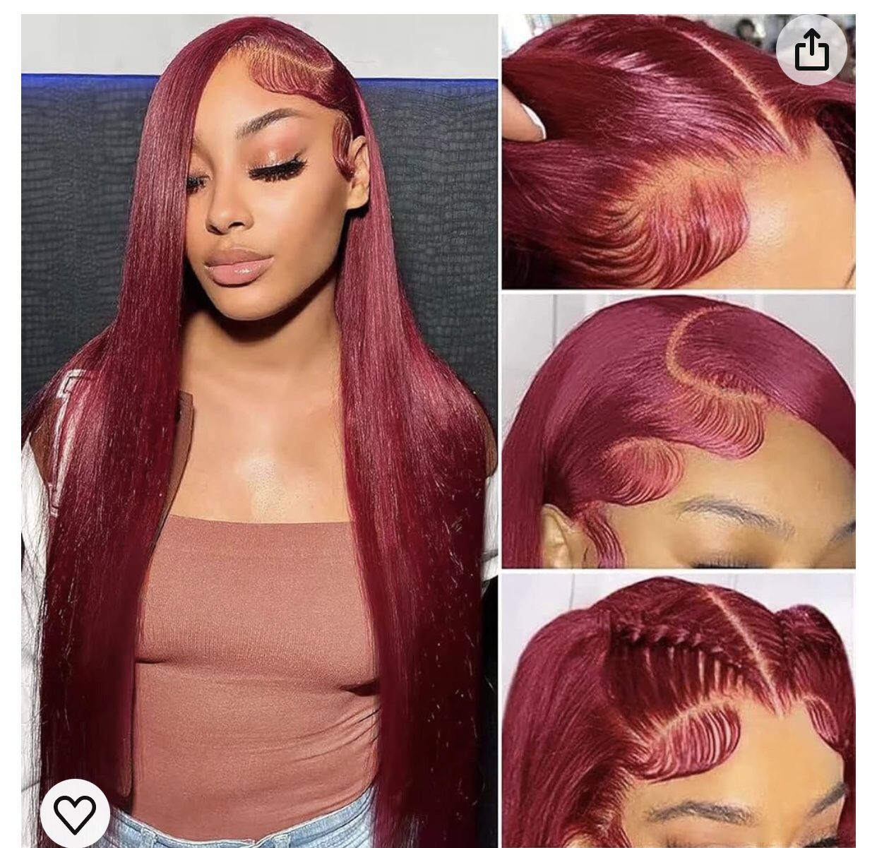 Burgundy Straight Lace Front Wigs Human Hair 24 Inch