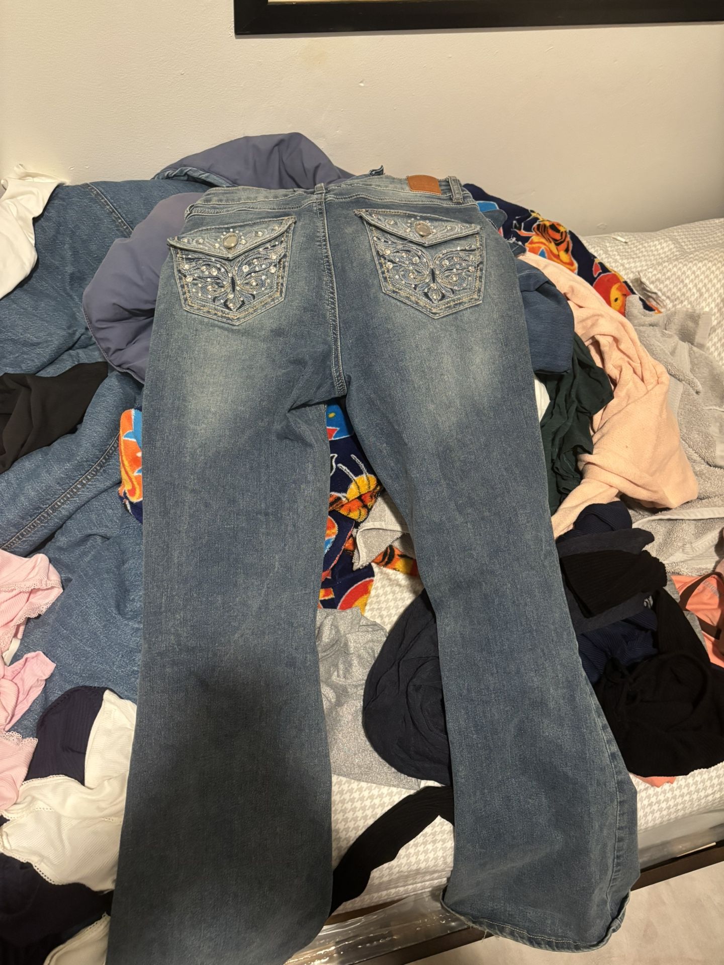 Dollhouse brand flare jeans. Size 28. Embellished back pockets. Light wash denim.