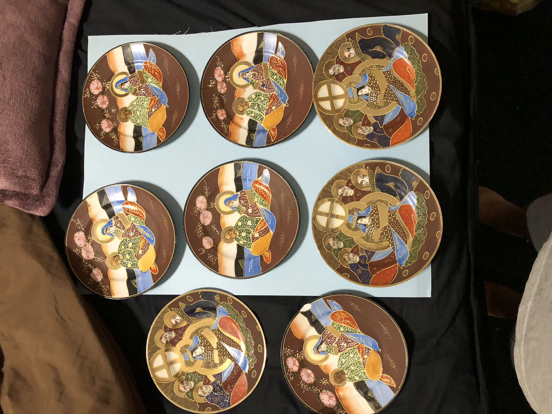 8 vintage japan satsuma moriage enameled dragon ware plates