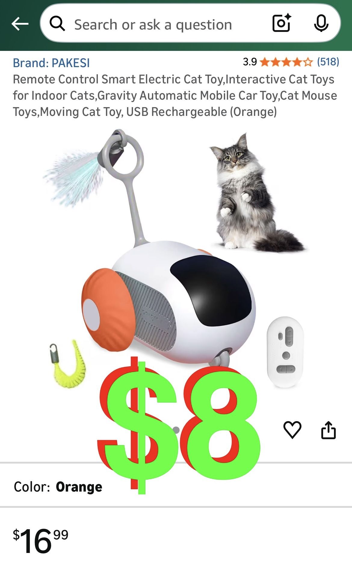 PAKESI Remote Control Smart Electric Cat Toy,Interactive Cat Toys for Indoor Cats,Gravity Automatic Mobile Car Toy,Cat Mouse Toys,Moving Cat Toy, USB Rechargeable (Orange)
