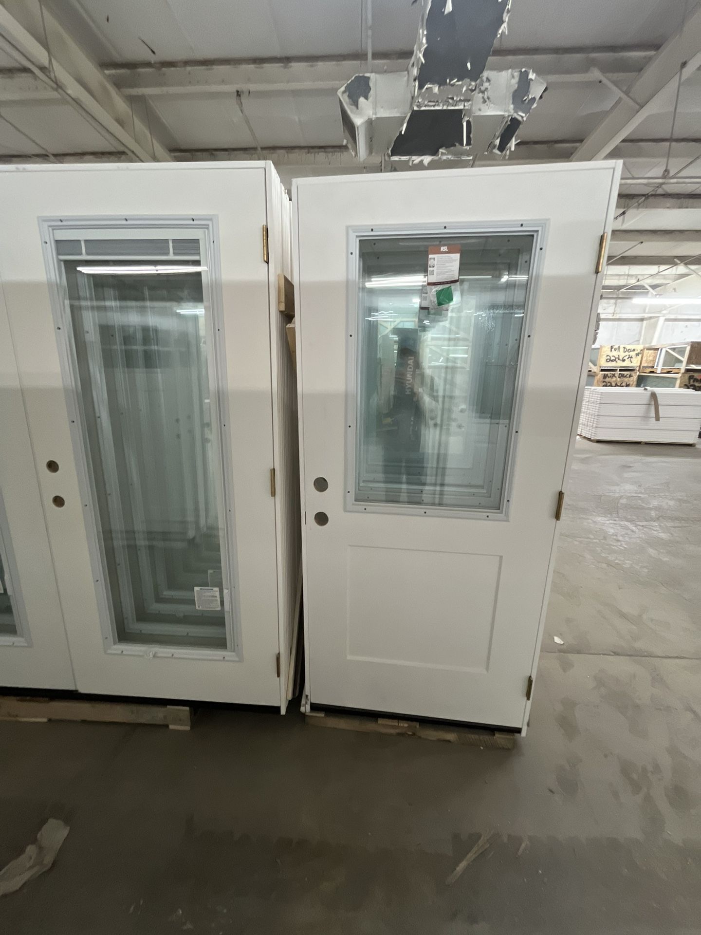 Let me know what you need in swing /out swing/ left hand/right hand sizes are from 36 inches wide and up to 8ft ft tall all doors are made upon each order prices start at 160$ and go up depending on what type of glass you want in the door and if it’s a single or double door (two five six six seven 7 81 85 also were offering delivery