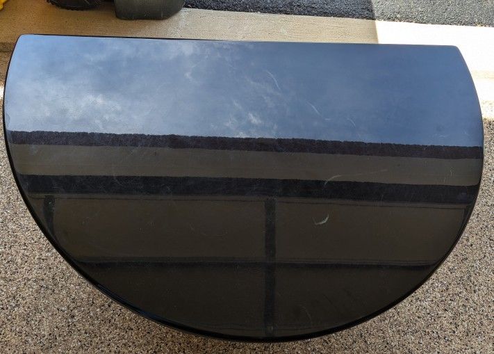 Measures: 17.5"H x 44"W x 28"D This is a lacquered wood table that gives off a faux marble look with white/grey veining. Top half of the "moon" freely swivels to create a full or half circle depending on your need. Table has been in my care for over 25 years and shows some signs of age with some swirls and light surface scratches that happen with lacquered tables. The following Etsy listing (not mine) shows more pictures and a video of the movement if interested. Sorry for the glare, but table is now in my garage ready for pickup. Other sellers online have this listed anywhere between 500 and 2000(if you say it's Karl Springer style table) , so I'm pricing this at 350 to start. Thanks for looking and let me know if you have any questions. https://offerup.com/redirect/?o=aHR0cHM6Ly93d3cuZXRzeS5jb20vbGlzdGluZy8xMjU3MjA4OTE1Lw==
