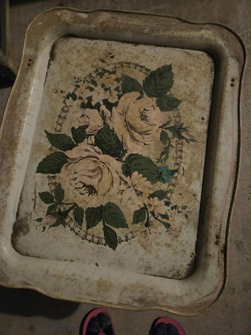 Vintage metal( aluminum may be tray table about a foot tall..sold as is..does have that rusty look gives it character sold as is Serious only for pivk up by appointment