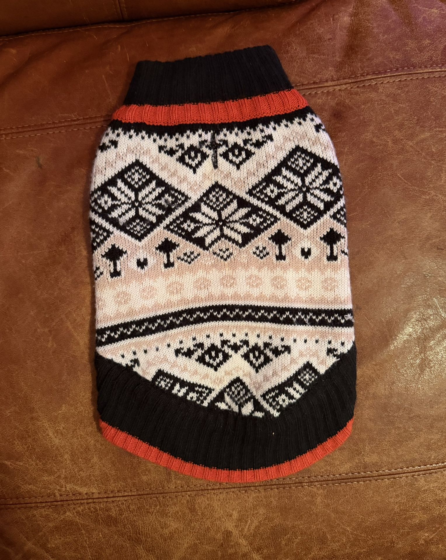 By Blueberry Pet. For a small dog. Colors: navy, orange, white & beige (kind of Bears sweater!) Photo of similar sweater shows what it looks like in 14” long, a little over 8” across. There is a size guide in the photos. Venmo & porch pickup in Humboldt Park
