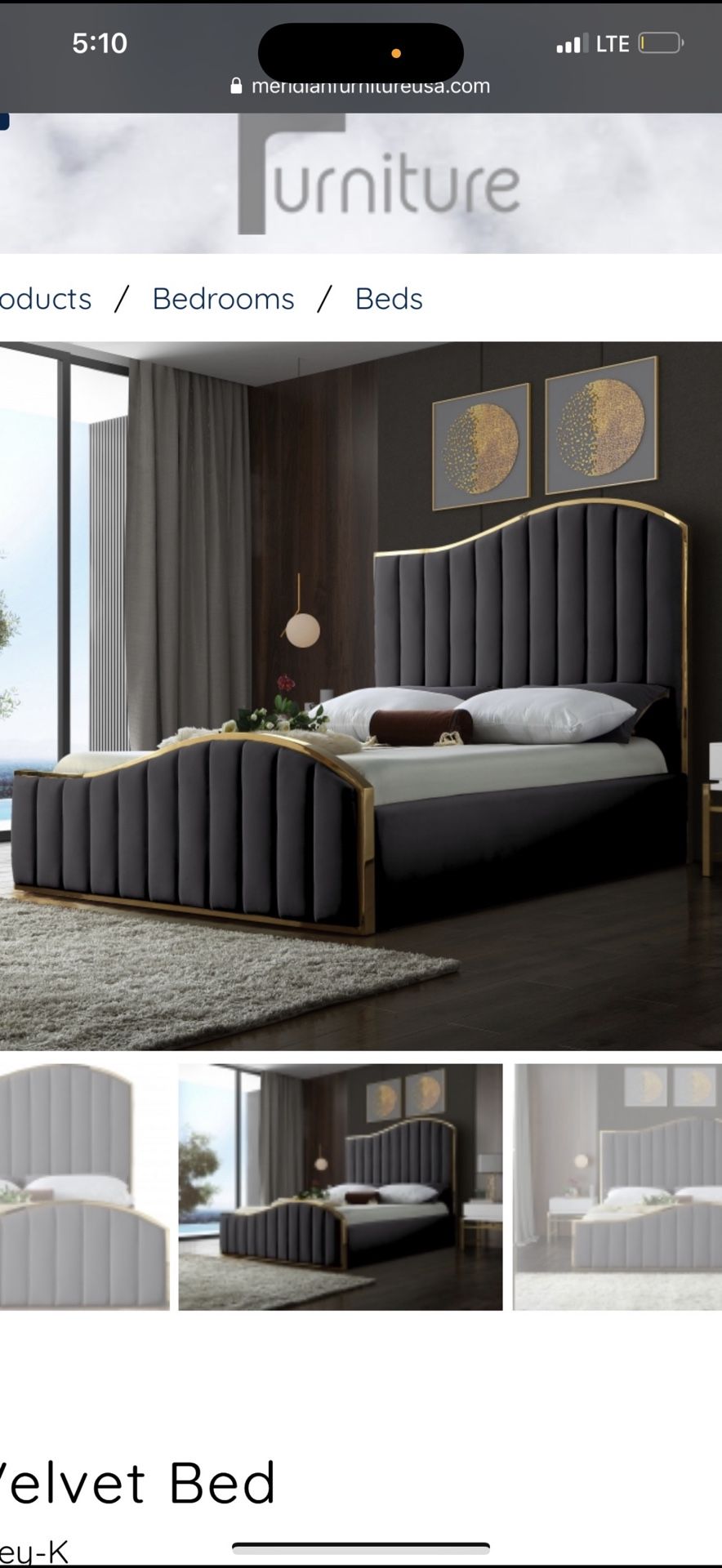 Gray and gold velvet bed King size No scratches, no damages. Moving out. Mattress not included
