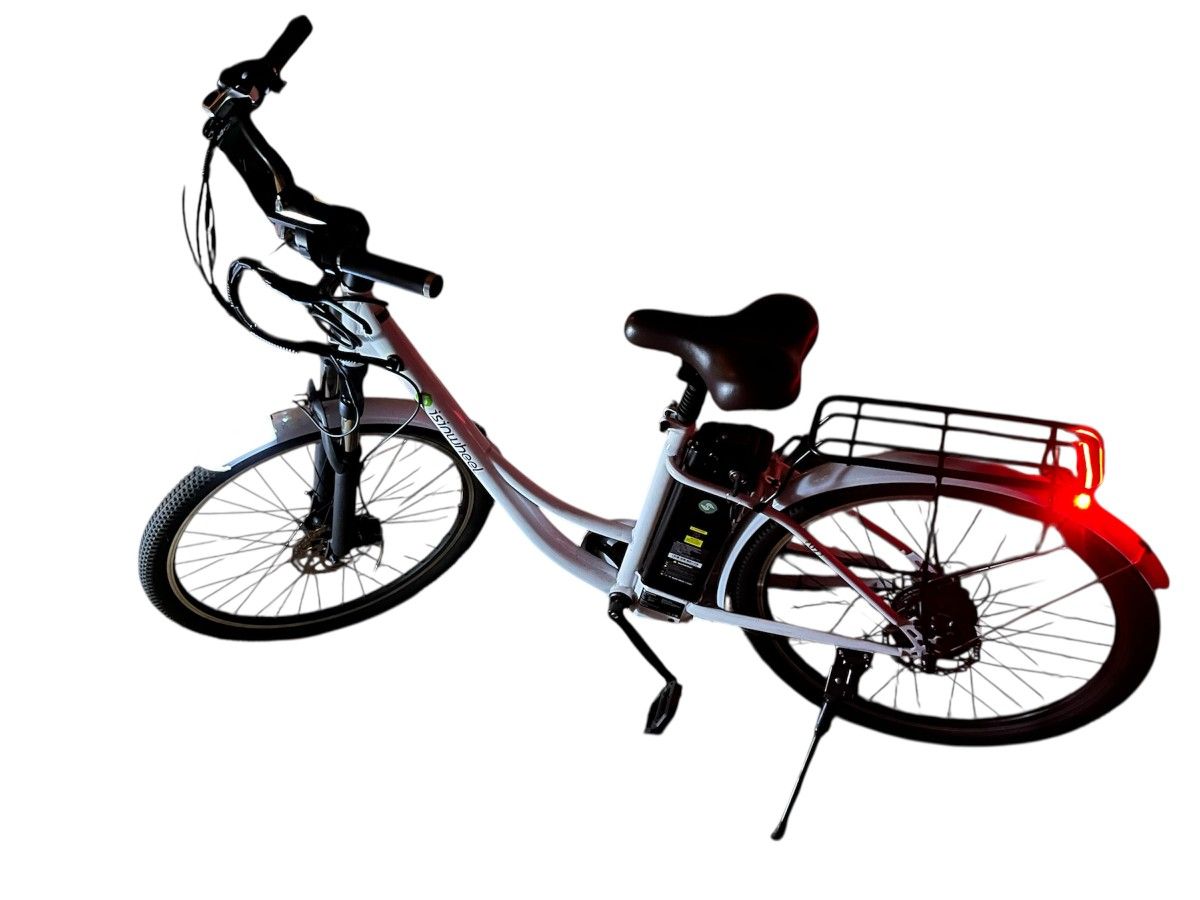 E-bike here for a new owner! This was my bike and I had gotten myself in a little dingy about 4 months ago that damaged the “gear shifter”. However it may be stuck in 7th gear, but that doesn’t stop the electronic pedal assist! Still rides no problem no bent wheels and comes with a lock and key. Has a 42V battery. I have videos of it working, message me and I'll send them over!