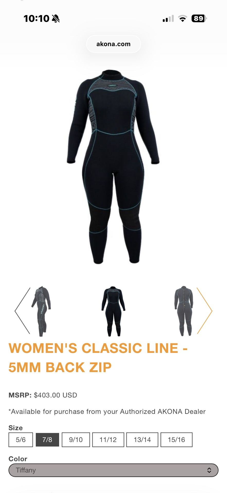 Size 7/8 women’s wetsuit Akōna WOMEN'S 5MM QUANTUM STRETCH WETSUIT Our Quantum Stretch neoprene makes this wetsuit easy to put on and remove, while offering maximum mobility in warm waters. This form fitting 5mm back zip delivers style, comfort, and warmth. DETAILS • Saltwater resistant zipper • Quantum Stretch material • Abrasion-resistant kneepads • Glued and blind stitched • Back zipper with long pull cord