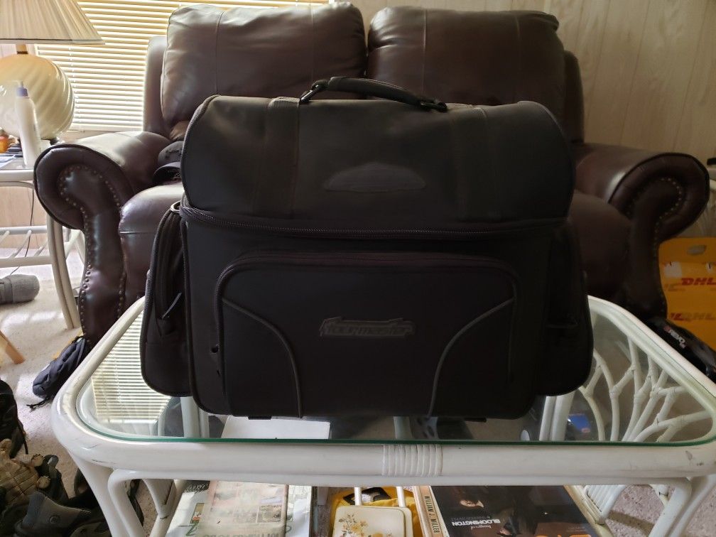 Here is a like new Tourmaster touring bag for the rear of your motorcycle. Goes on a Sissy bar or mounts to a rear plate.. These retail for about $250 new and it's been only used for a short while before being packed away and is a little dusty. We'll take 1st $135