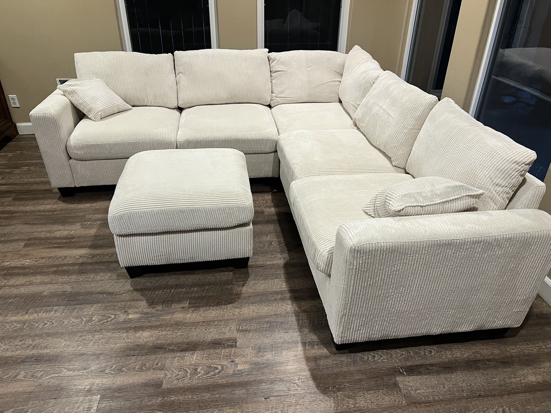 New Corduroy Sectional. Beige, Grey Or Green. 99” X 99”. Free Delivery!