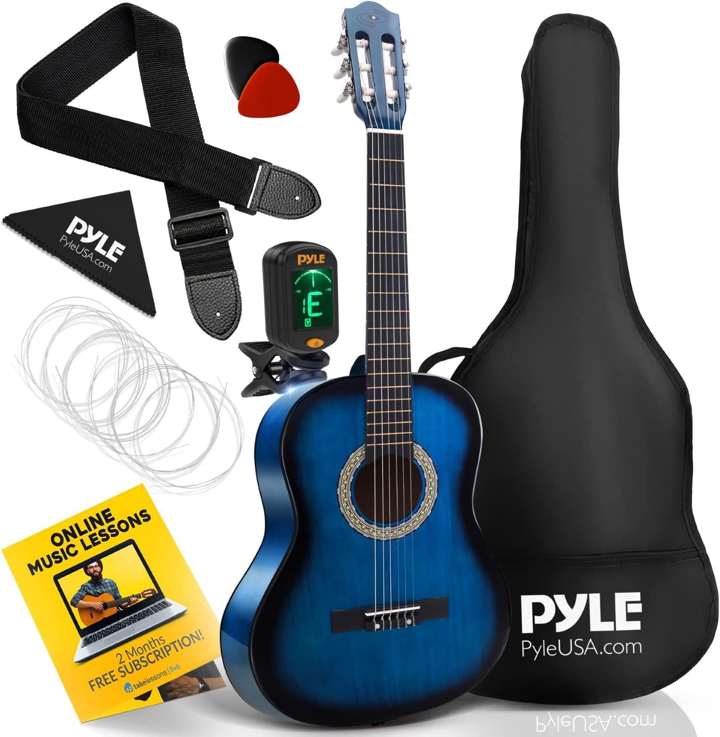 Amazon Retail $ 79.99 Brand Pyle Color Blue Fade Top Material Type Linden Wood Body Material Linden Wood Back Material Type Linden Wood Neck Material Type Mapel Fretboard Material Type Maple Wood Guitar Pickup Configuration S String Material Type Nylon Hand Orientation Right