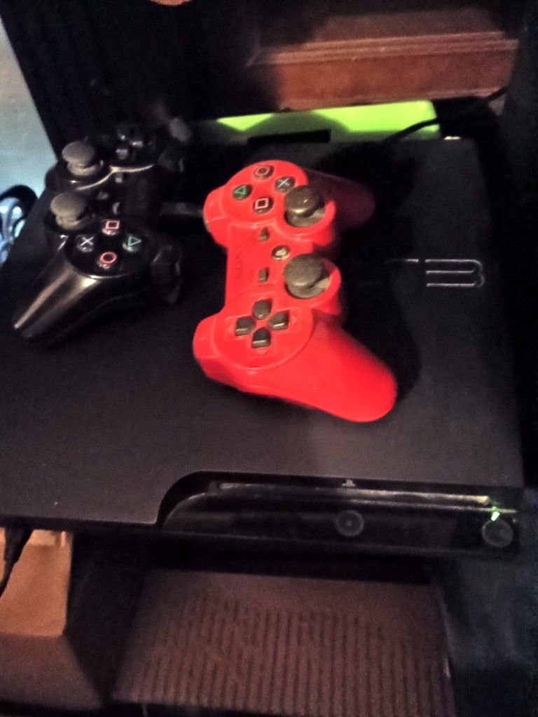 PlayStation 3 with two wireless controllers and 35 games. Will sell games separately.